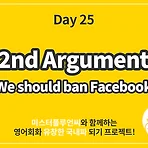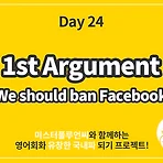 Demonstration of Actual DebatingThe 1st Argument Motion: We should ban FacebookSide: Proposition You can find a full script in the material right below. Assignment ※비번 카톡 메세지 참조 찬, 반 사이드는 스스로 정합니다.총 2가지를 보내주시면 됩니다. 1. English Full Script (Step 2) 1) 아래 댓글에 남기시거나 2) 미플 카톡으로 보내주세요. (워드 파일 말고 텍스트로 보내주시면 감사하겠습니다. 2. Record File (Step 3)마찬 가지로 키워드 스피치 녹음 파일을 미플 카톡으로 보내주시면 됩니다.제한 시간, 분량 제한은 없습니다. 길 수록..