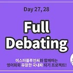 Demonstration of Actual DebatingThe 2nd Argument +Question: 자꾸 같은 단어, 같은 구조, 같은 말만 되풀이하는 거 같아요... 어떻게 해야하죠? -> Will be answered at the end of the video. You can find a full script in the material right below. Assignment ※비번 카톡 메세지 참조 찬, 반 사이드는 스스로 정합니다.총 2가지를 보내주시면 됩니다. 1. English Full Script (Step 2) 1) 아래 댓글에 남기시거나 2) 미플 카톡으로 보내주세요. (워드 파일 말고 텍스트로 보내주시면 감사하겠습니다. 2. Record File (Step 3)마찬 가지로 키..