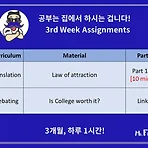 Weekly Schedule Correction Linkhttp://mrfluency.tistory.com/263 Assignments● 총 과제 개수 = 3개 (댓글 1개+ 녹음 파일 2개) 01. Re-Writing● Writing 본 블로그 댓글 작성 02. Reading English Script ● 녹음 파일 1 전송 03. Speaking English seeing Korean ● 녹음 파일 2 전송