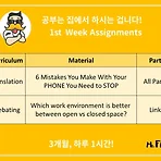 새로오신 분들은 밑에 1,2번 읽고 과제 수행해주시길 바랍니다! ▶ For newcomers 1. OT 읽기http://mrfluency.tistory.com/176?category=797785 2. Debating OT 읽기http://mrfluency.tistory.com/177?category=798048 ▶ Translation ★번역 제한 시간 = 1:50초 ★ ▶ Debating Link http://mrfluency.tistory.com/165?category=798048 Debating Mission 아래 문법 3개 집어넣어서 써오기! http://mrfluency.tistory.com/248?category=800449