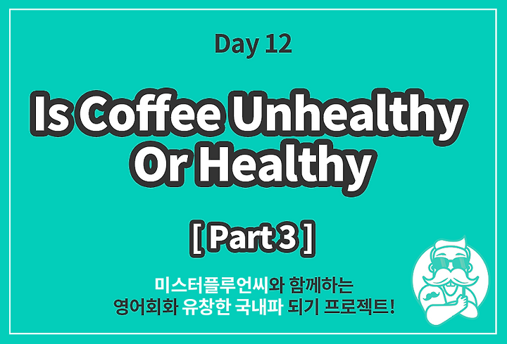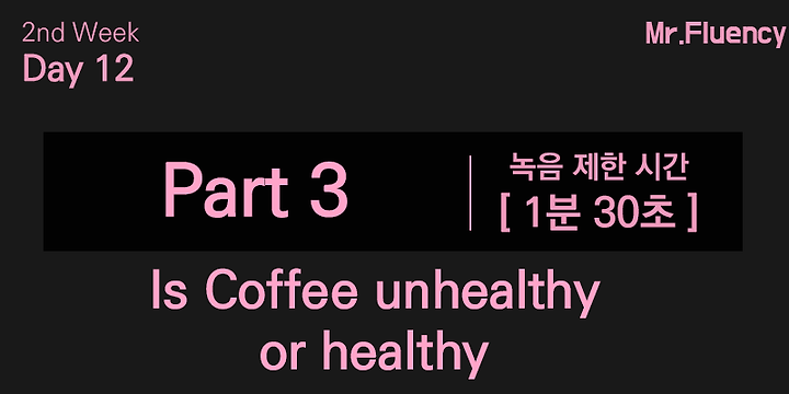 온라인 영어회화 스터디/미스터플루언씨 4기 Day 12_IS COFFEE UNHEALTHY... or healthy_Part 3 미스터플루언씨 2018. 8. 24. 08:01 Weekly SchedulePart 3 VideoAssignmentsStep1. Speaking Loud 3 times● 녹음 파일 1 제출Step2. Speaking from Korean to English● 녹음 파일 2 제출Step3. Writing & Correcting● 녹음 파일 3 제출